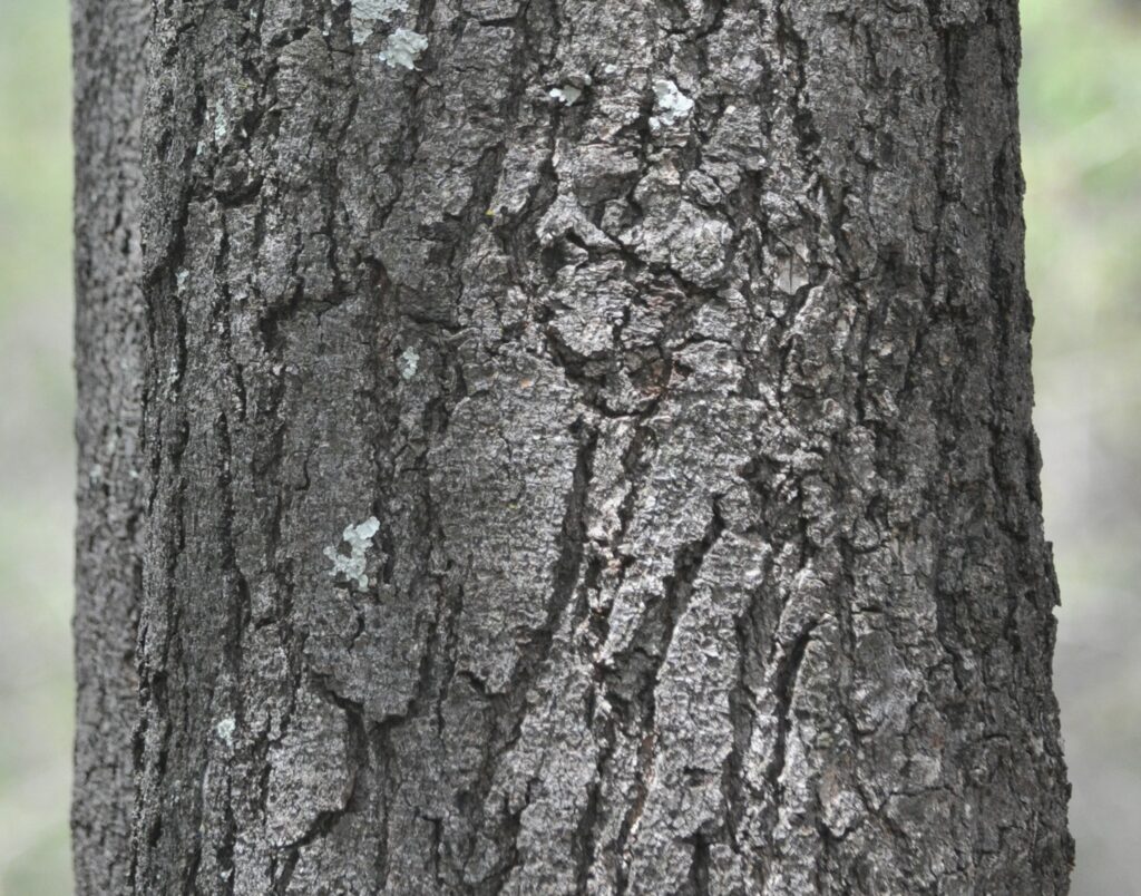 This spineless Tree may reach 22m high (usually less) and has a dense, rounded crown with a spread of up to 15m (photo 94). The Trunk is straight with a diameter up to 0,6m. In the young trunk, the Bark is initially fairly smooth and grey to reddish brown (photos 357 & 358). As it ages, it becomes rough and much darker (photo 105). The spreading Branches are dense and may initially hang down and turn up near the ends. Newish branches are green (photo 102 – under Leaves) and develop Lenticels (usually raised corky oval or elongated areas on the plant that allow the uncontrolled interchange of gases with the environment) are visible (photo 358).