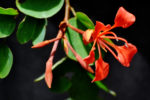 General Info – summary Multi-stemmed shrub, climber or Tree to 3+ m high. A simple, not deeply divided bilobed Leaf with base arising veins. Bisexual, slightly irregular, 5-merous, spectacular red Flowers in racemes. Joined green sepals with a spathe. Red obovate petals surround 3 stamens and 7 staminodes. Single pistil has a superior ovary + […]