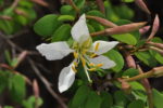 General Info – summary This evergreen endemic Tree is up to 6m high with light brown bark becoming dark. Smallish Leaves are deeply bilobed with roughly semi-circular lobes. The attractive white, bisexual, slightly zygomorphic, large, 5-merous Flowers have attached spathes. 5 white filaments + golden anthers. The superior ovary has 1 style & a green […]